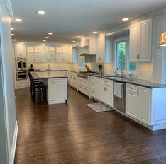 This kitchen renovation we took down a non bearing wall that divided the kitchen and the dining room. We extended a wall out that also needed a new beam that separated the kitchen from the living room. The entire first floor got re-sanded, stained and polyurethane. As well as two sets of stairs. The customer maximized their space with custom cabinetry which allowed them to fit two sinks, two dishwashers, icebox, beverage center, two ovens, built in microwave, cook top and the heaviest but beautiful refrigerator. They also picked out quartz countertops, subway tile for the backsplash and a nice showcase piece behind the range. A great project to be a part of and being able to deliver a nice, bright and wide open space for this family.